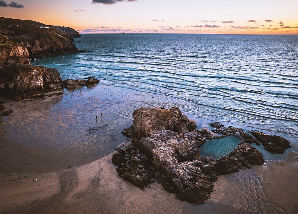 Carved into a natural rock base, this tidal pool in Perranporth fills and empties with the Atlantic’s rhythms. There’s little architecture here – just stone, sand and tide. But its quiet presence creates a gathering space all the same. Wild swimmers, families and passersby all share this pool, shaped equally by human hands and ocean forces. There’s no signage, no fanfare – just a quiet pocket of stillness where the ocean briefly pauses. Swimmers step carefully across the floor, bracing against the chill. Kids cannonball while others wade, letting the water wrap around their ankles. It’s not polished, but it doesn’t need to be – this is an amenity offered up with each retreating tide.