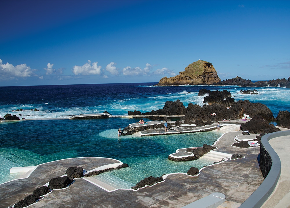 Carved into a lava field on Madeira’s north coast, these saltwater pools feel like a series of coves designed by the sea itself and only gently guided by human hands. Smooth white walkways curve through the black volcanic rock, leading to platforms where swimmers sunbathe between dips. The ocean crashes nearby, but within the pools, the water is calm and glassy. Built in the 1950s and lovingly maintained since, the pools are a civic gift: public, elemental and connected to place. It’s no wonder you’ll always find families floating, kids chasing fish and older couples easing into the water, hand in hand.